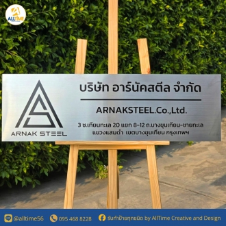 ป้ายชื่อบริษัทประเภทนี้สามารถใส่สีสันและลวดลายได้หลากหลาย เหมาะสำหรับธุรกิจที่มีโลโก้หรือดีไซน์ที่ต้องการความโดดเด่นเป็นพิเศษ สามารถสร้างป้ายสแตนเลสหรือโลหะแบบหรูหราได้ด้วยการใช้ตัวอักษรสีดำบนพื้นผิวโลหะ